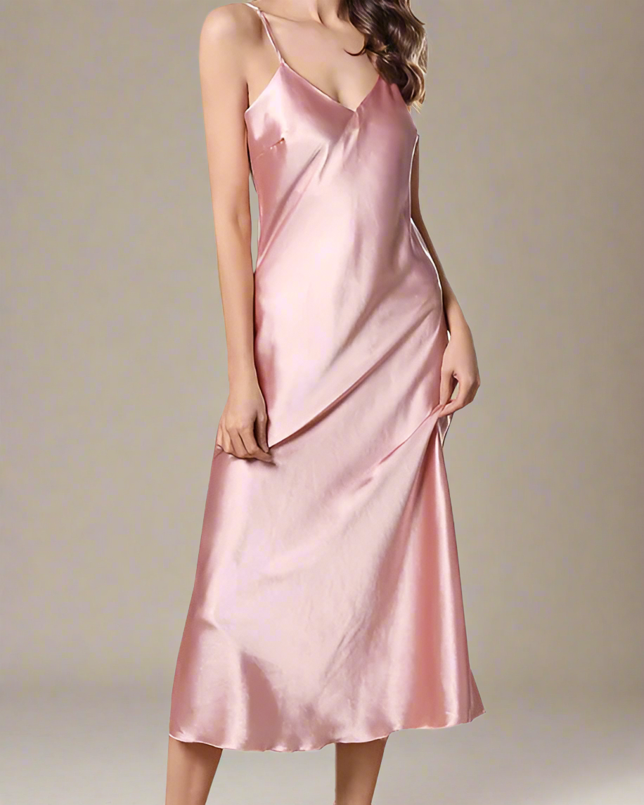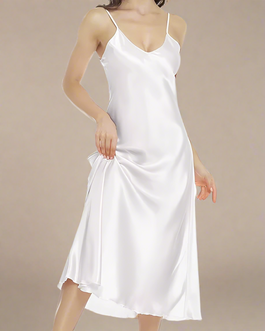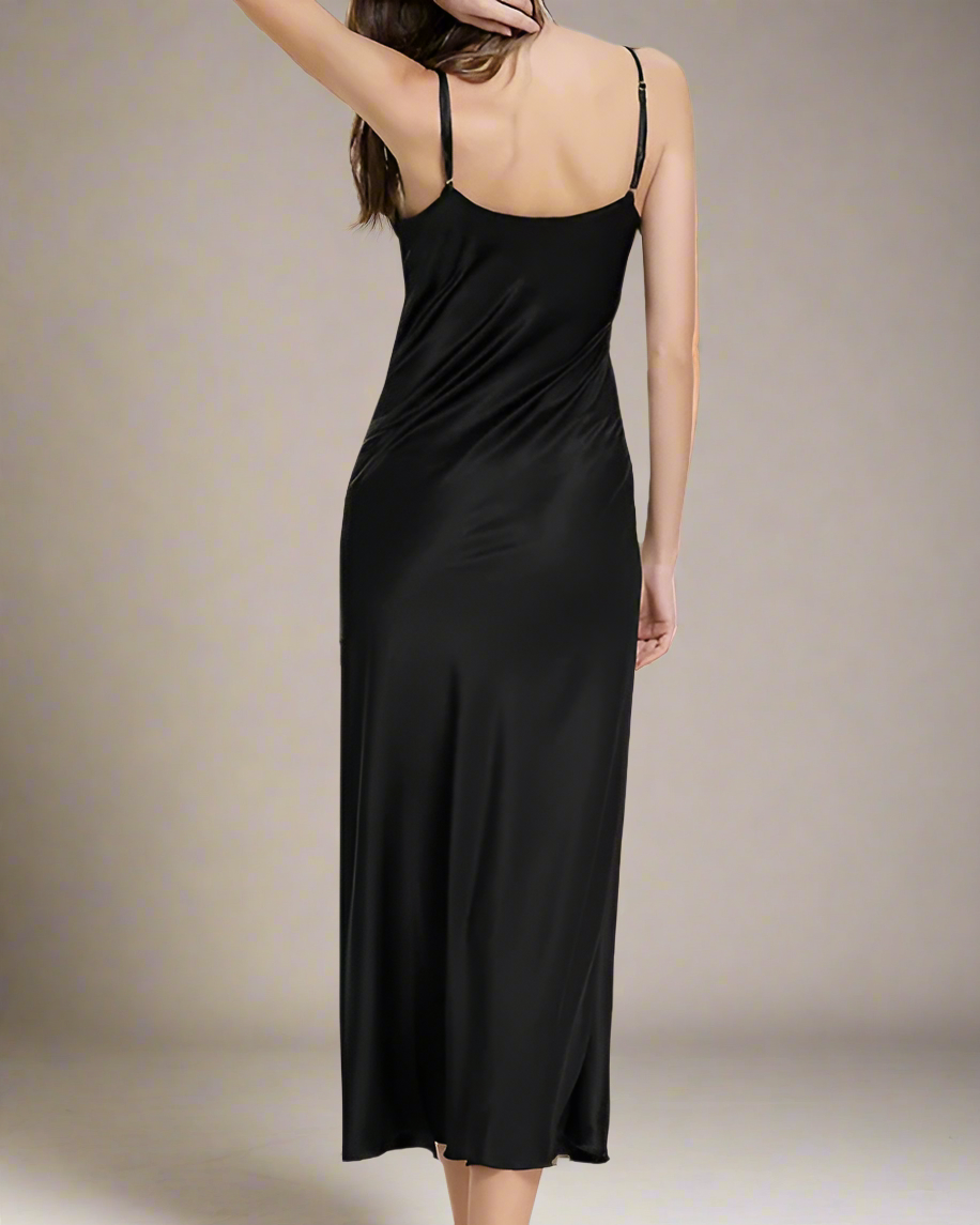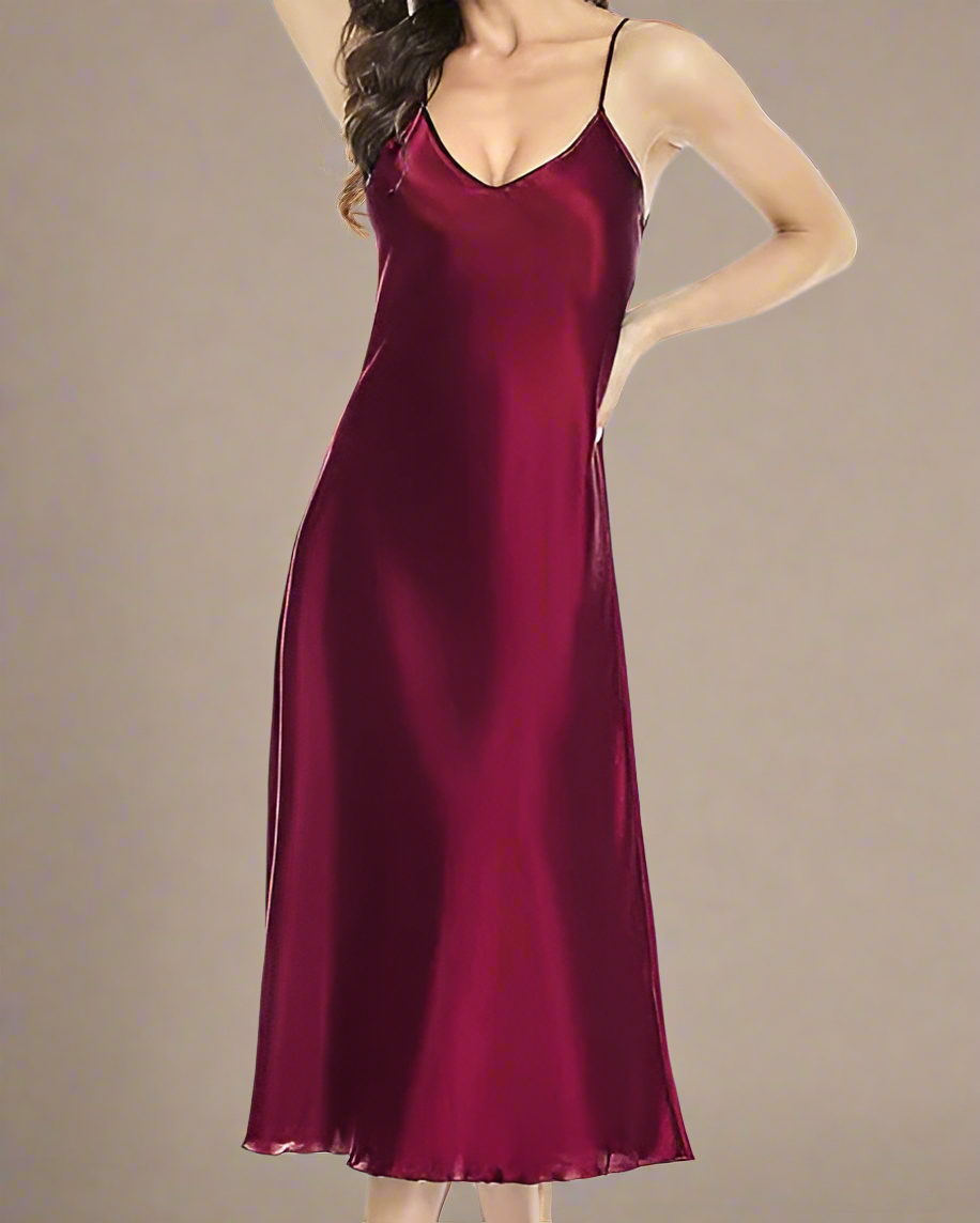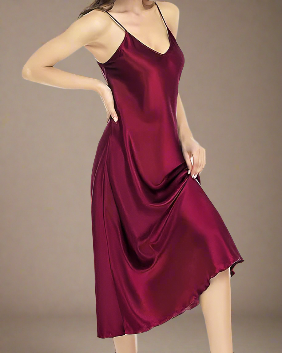 Midi Satin Negligee - Satin Strappy Midi Nightgown Midi Satin Negligee - Satin Strappy Midi Nightgown