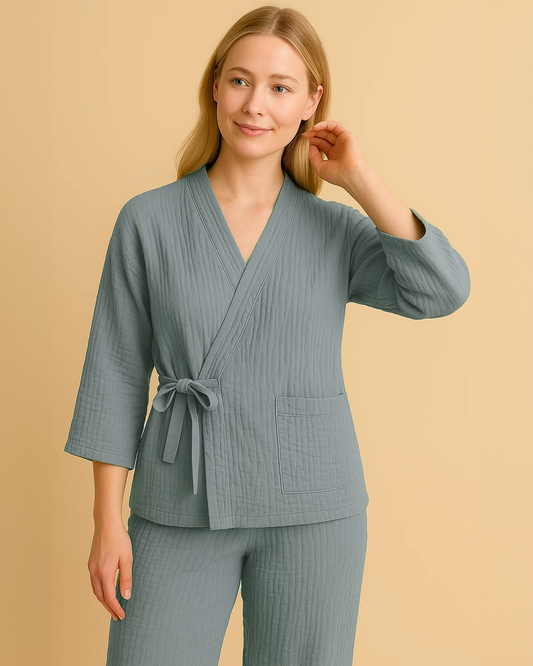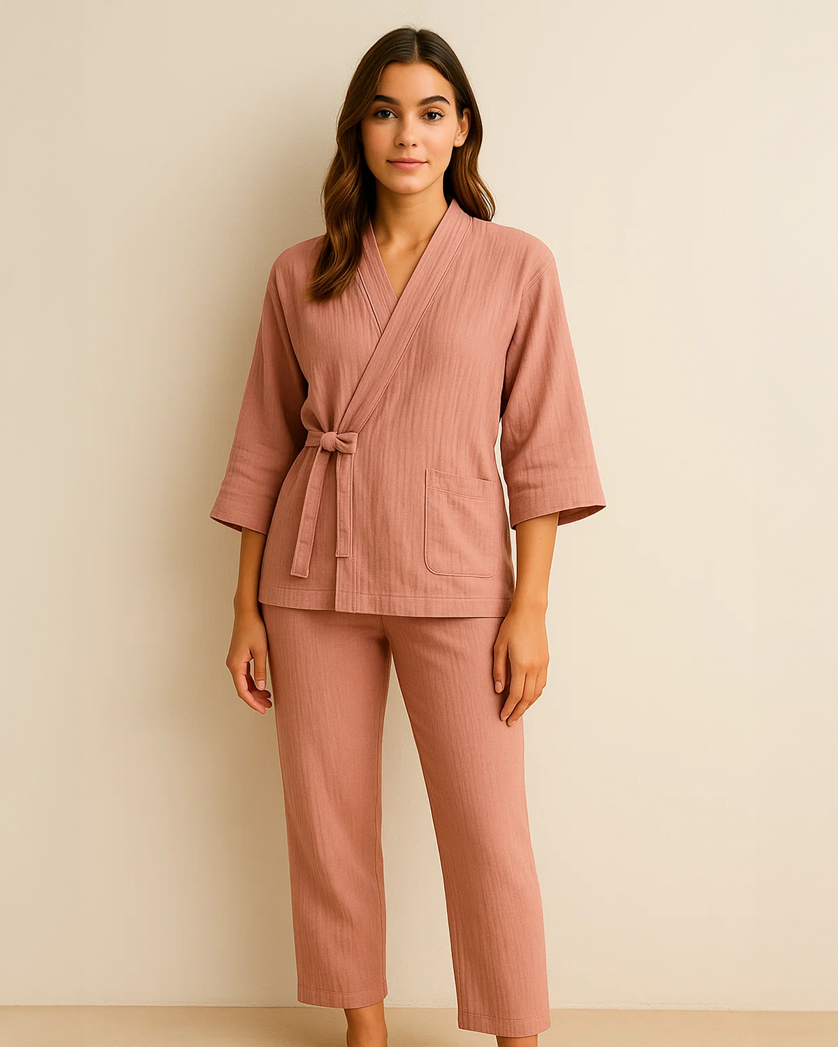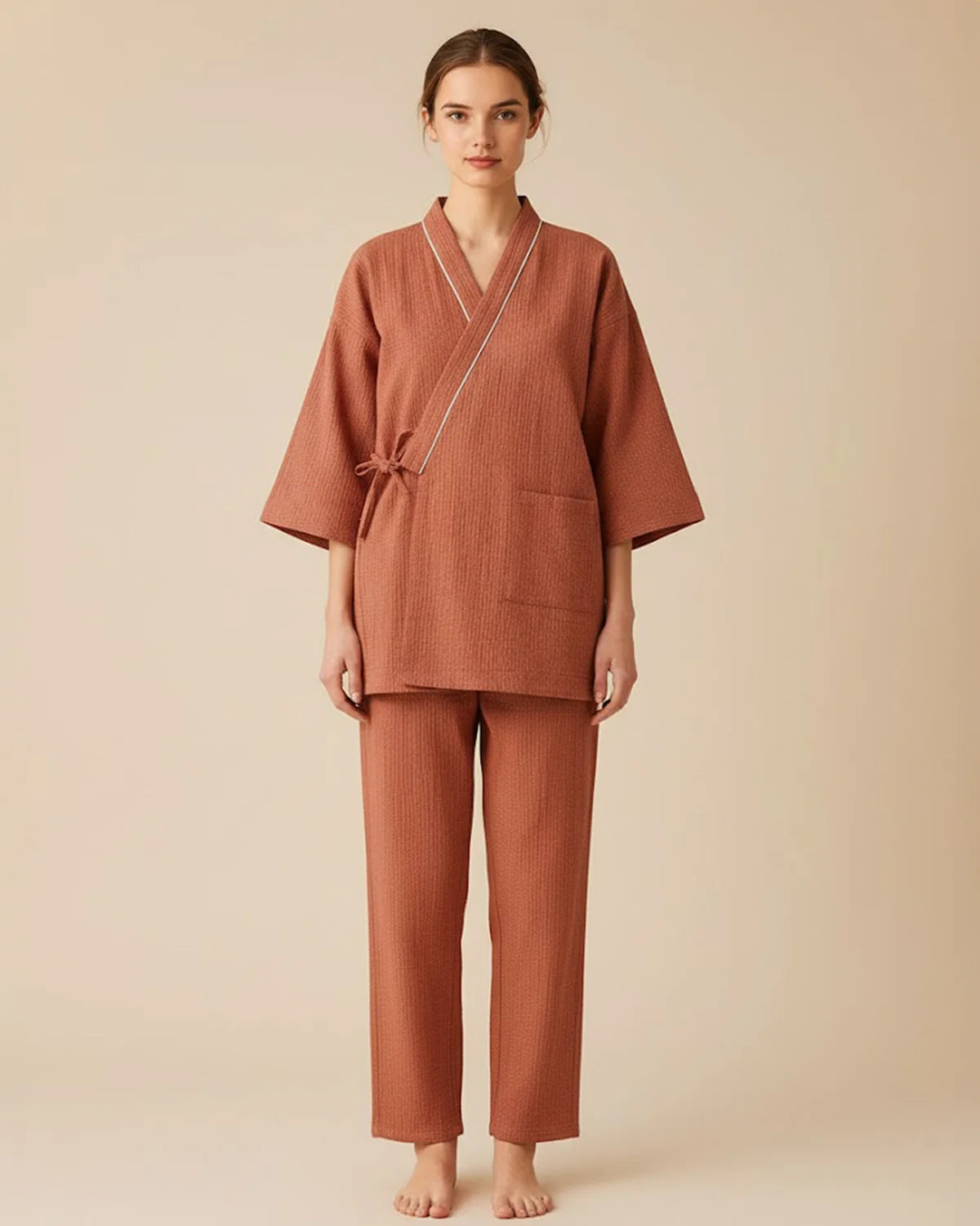 Cotton Quilted Kimono Set - Japanese Inspired Loungewear Set Cotton Quilted Kimono Set - Japanese Inspired Loungewear Set