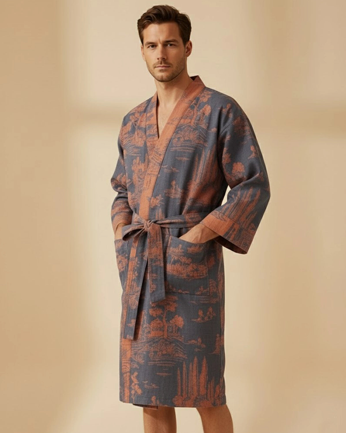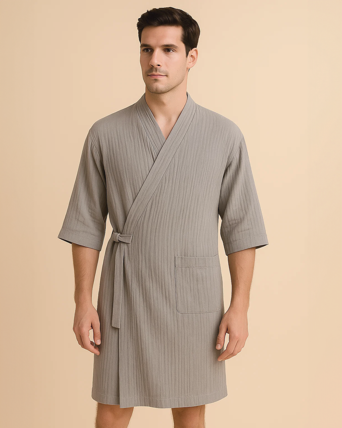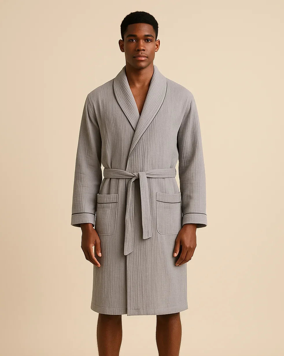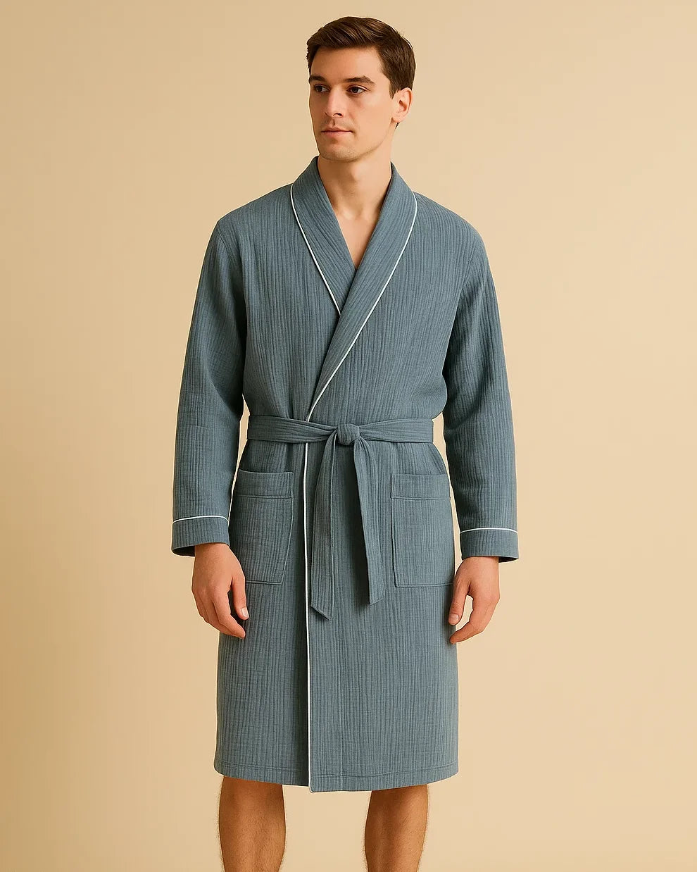 Men Organic Muslin Cotton Robe - Lightweight Breathable Robe for Men Men Organic Muslin Cotton Robe - Lightweight Breathable Robe for Men