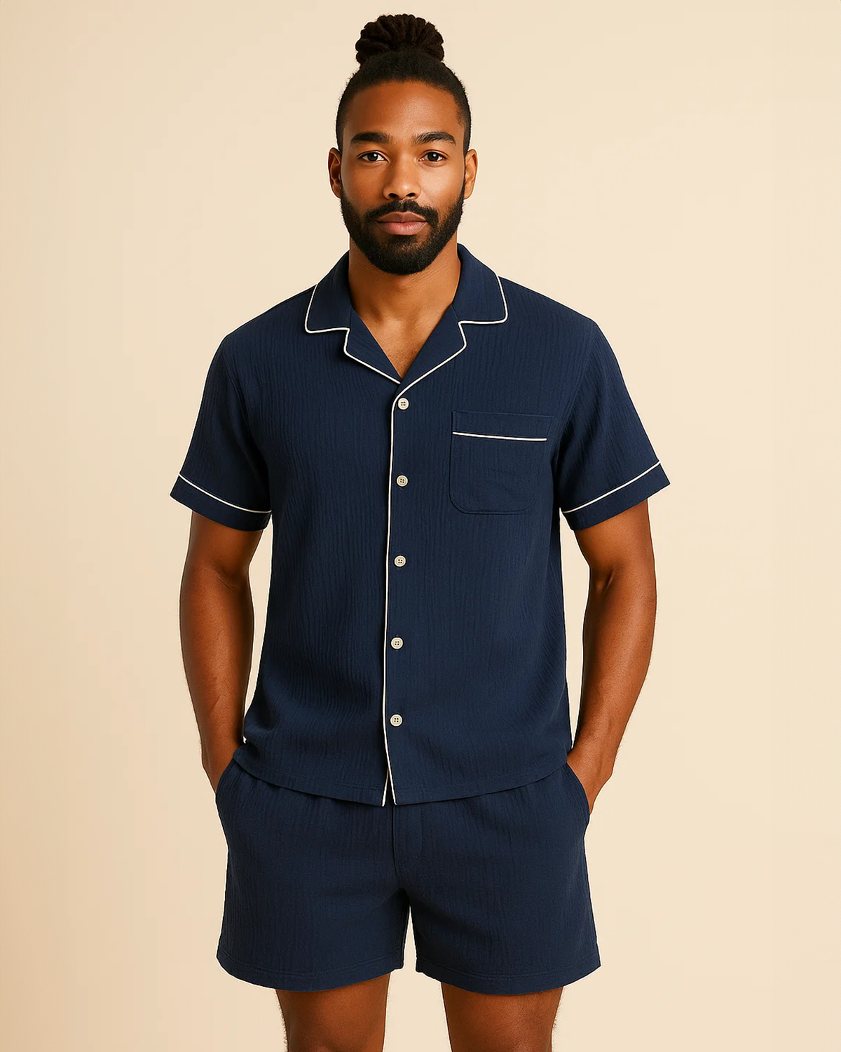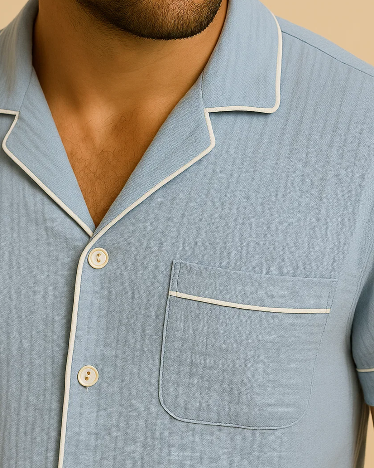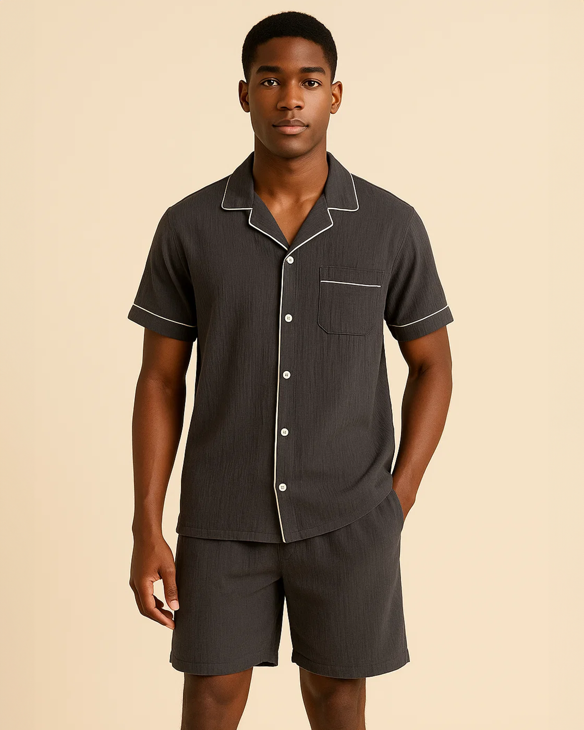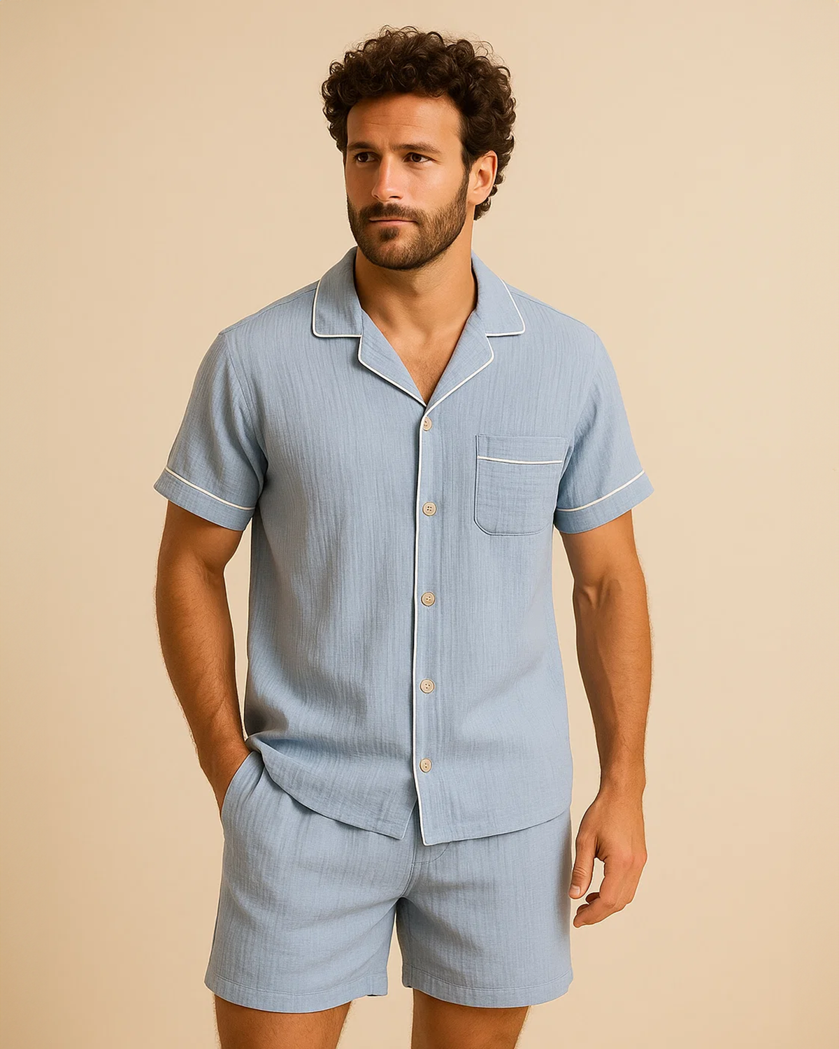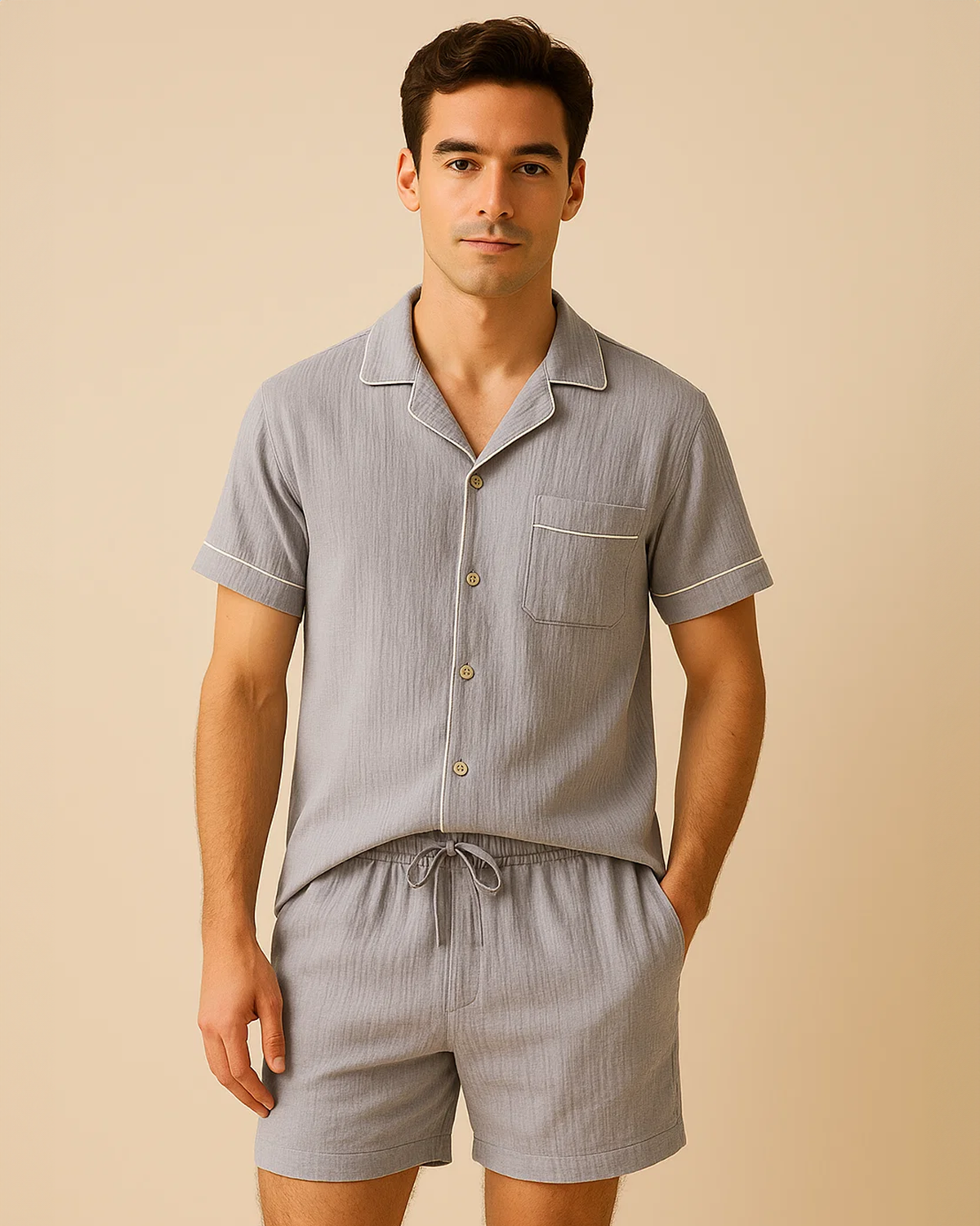 Men’s Cotton Muslin Pyjama Shorts Set – Lightweight Button-Up PJS Men’s Cotton Muslin Pyjama Shorts Set – Lightweight Button-Up PJS