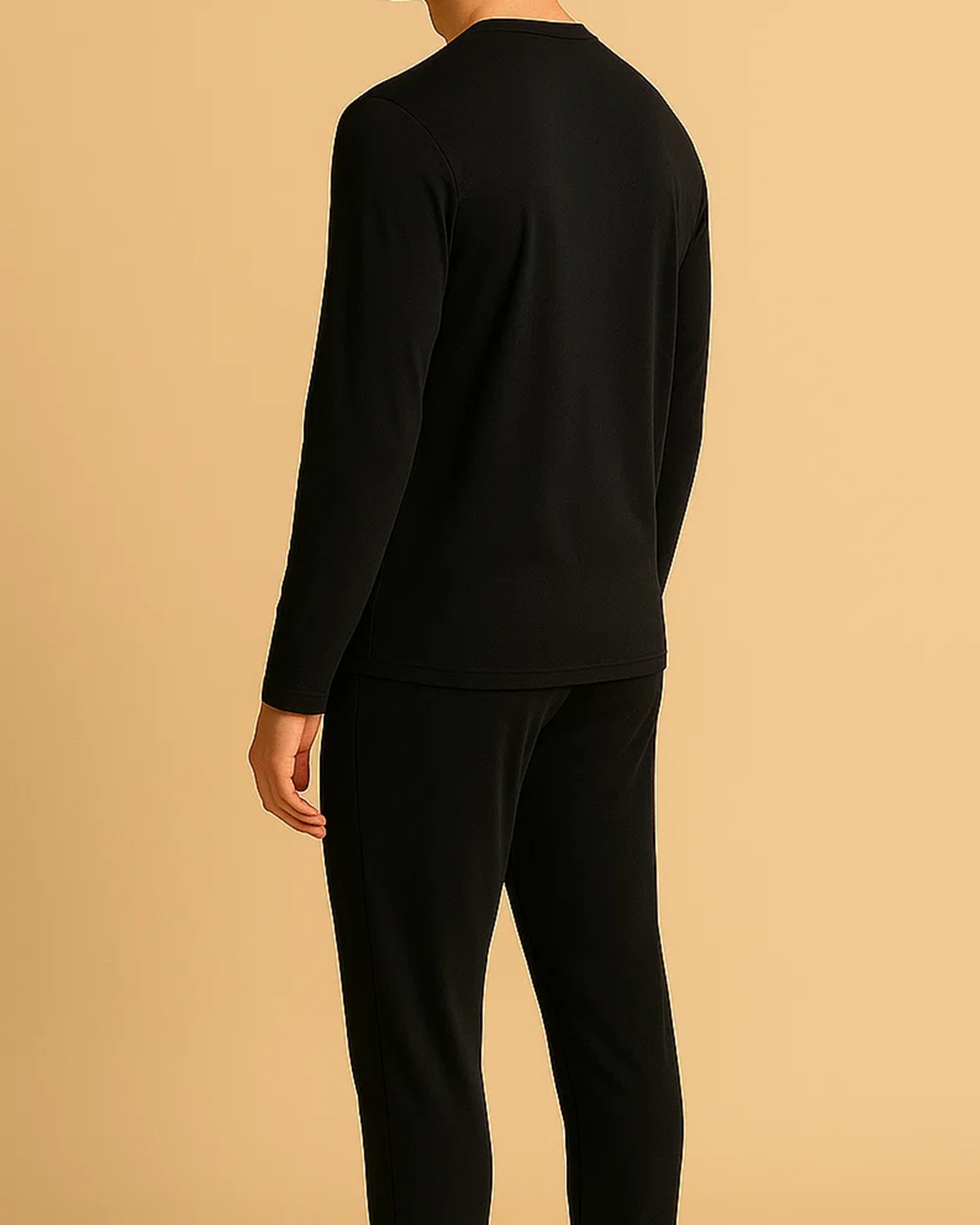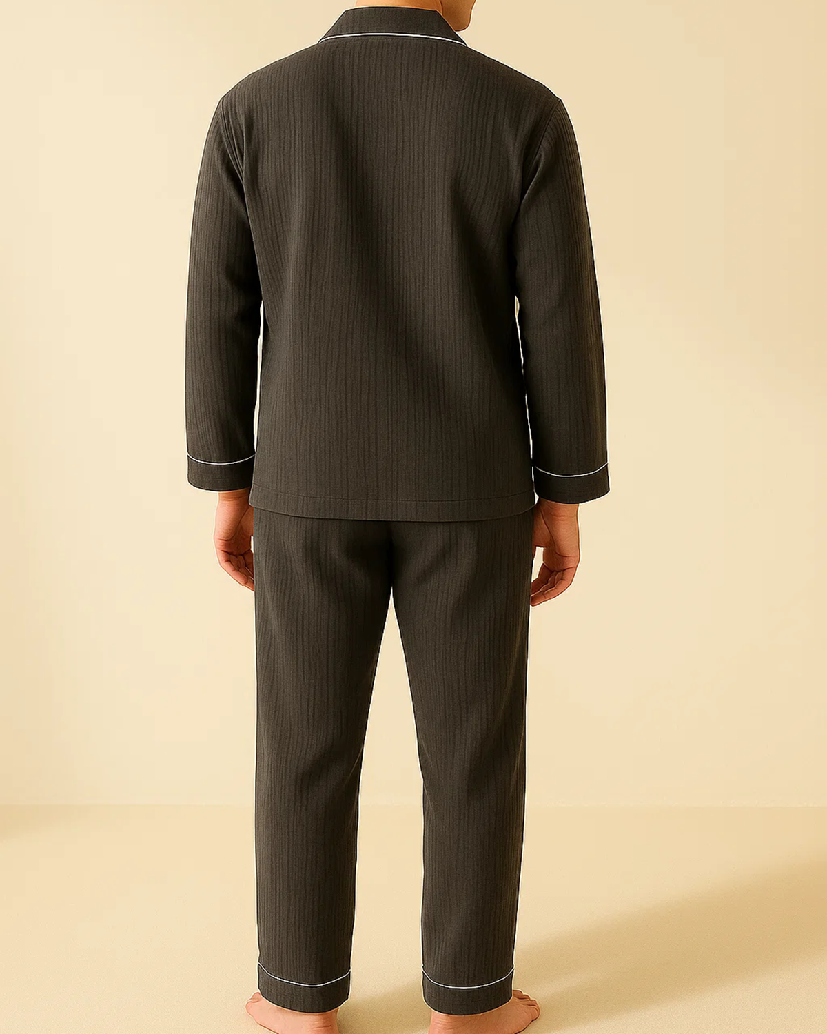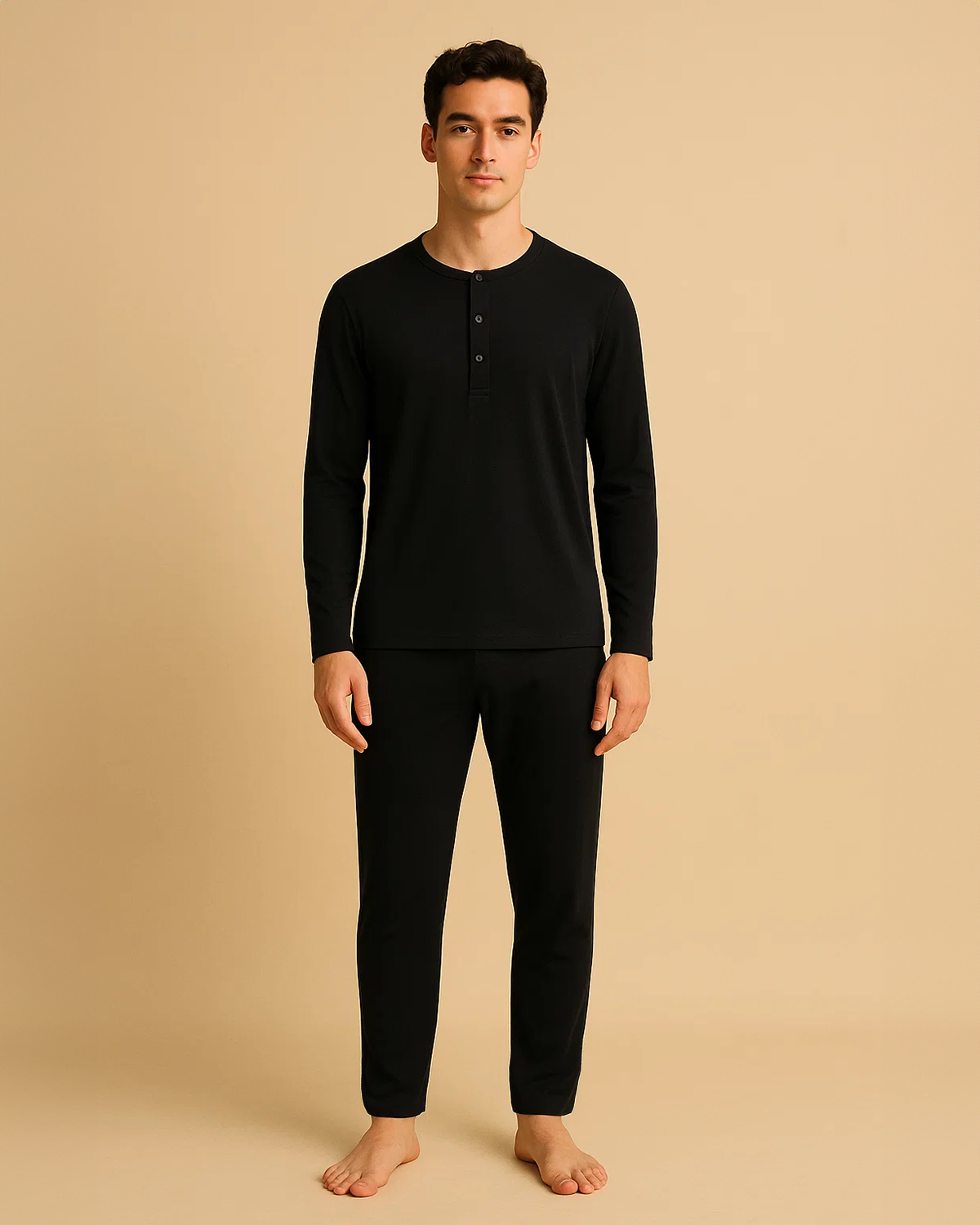 Men's Recycled Cotton Pyjama Set | Classic Sleepwear in Navy, Black & Burgundy Men's Recycled Cotton Pyjama Set | Classic Sleepwear in Navy, Black & Burgundy