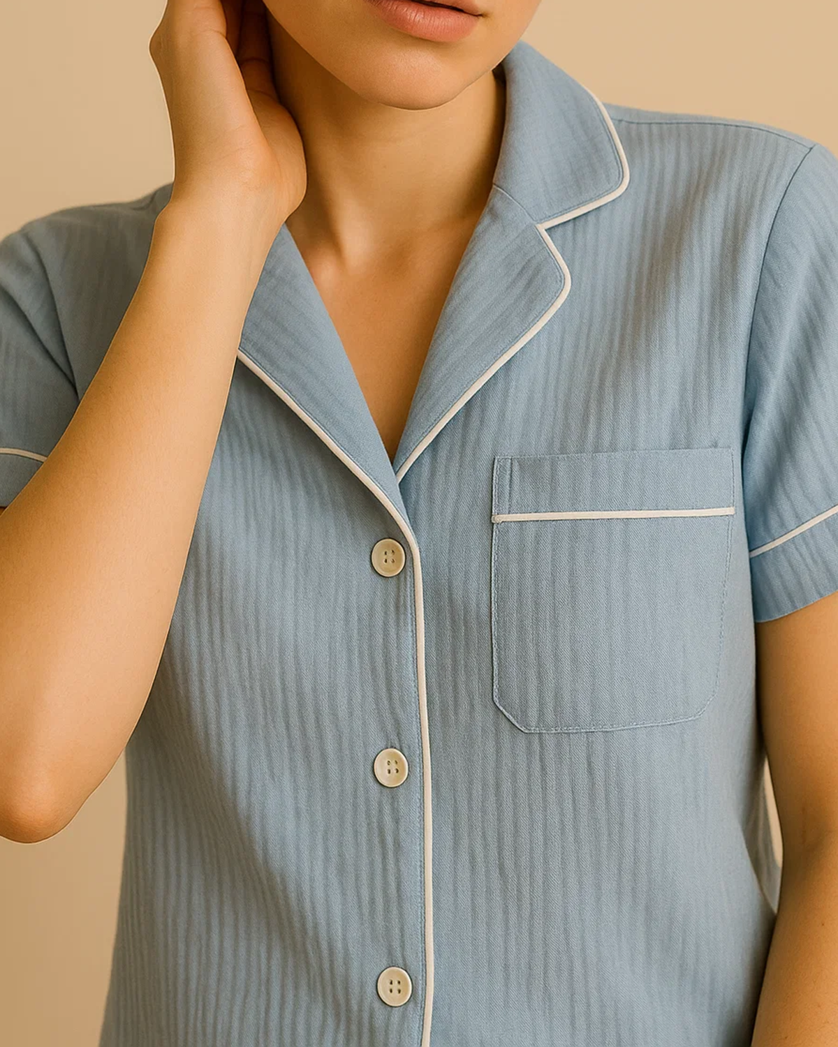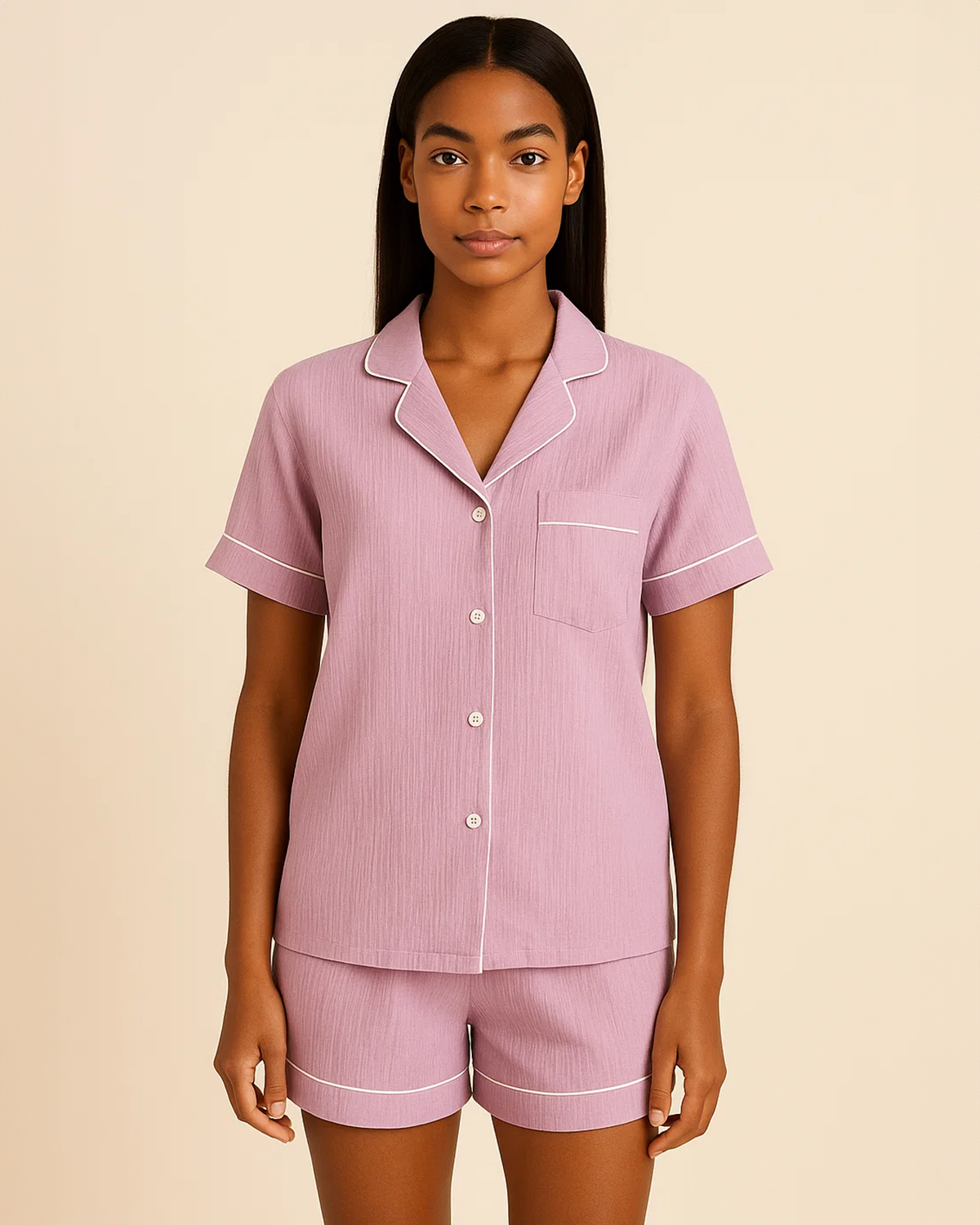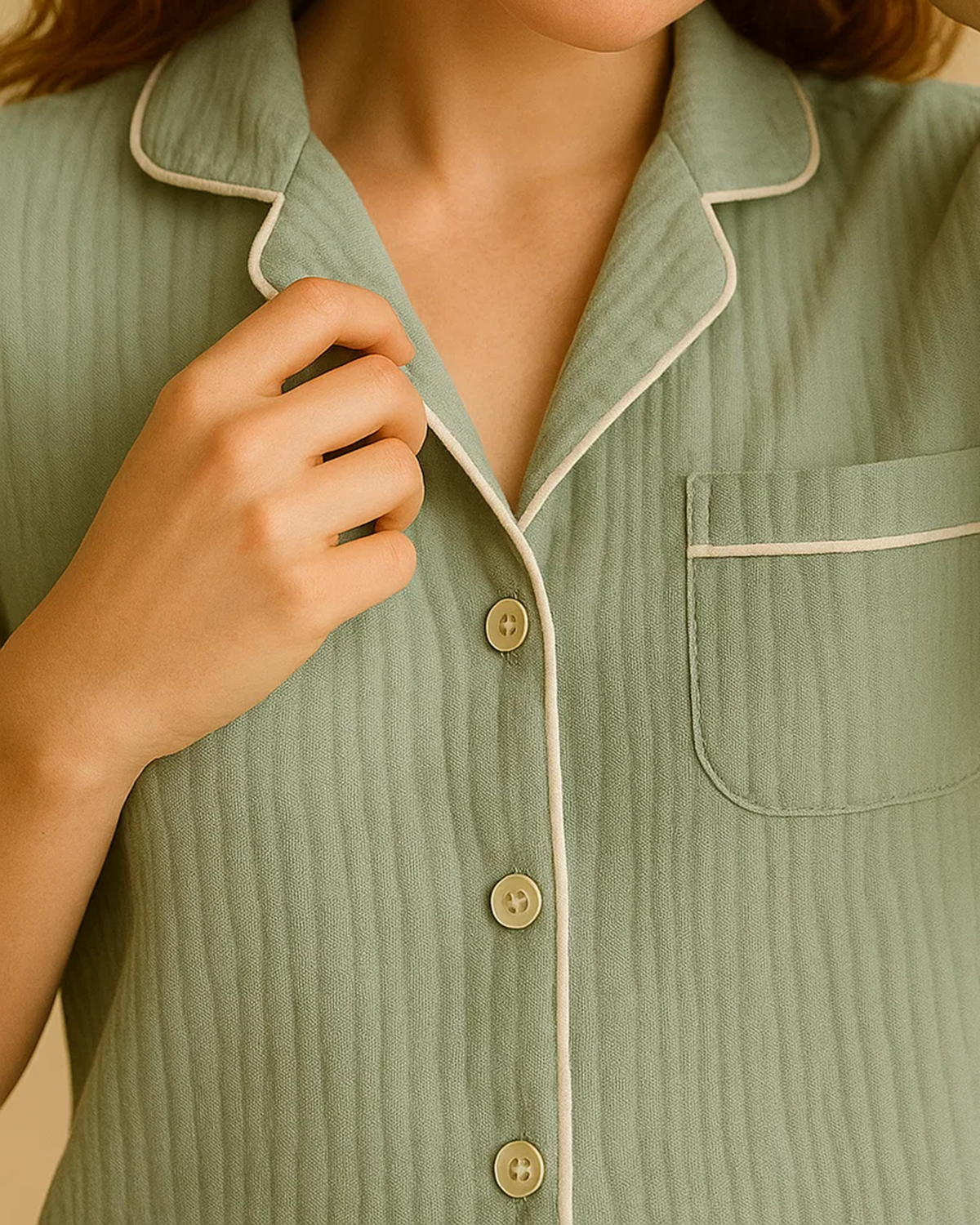 Women's Muslin Crepe Pyjama Shorts Set – Lightweight Cotton-Viscose Button-Up Sleepwear Women's Muslin Crepe Pyjama Shorts Set – Lightweight Cotton-Viscose Button-Up Sleepwear