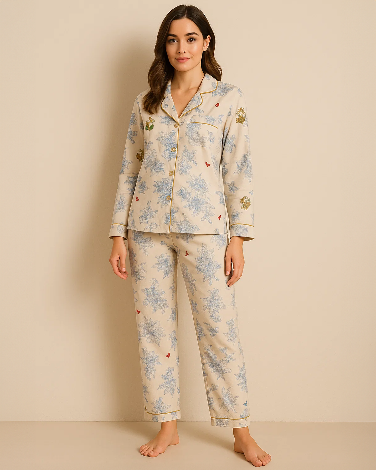 Women’s Heart Print Cotton Pyjama Set – 100% Recycled Muslin Crepe, Button-Down, Classic Sleepwear Women’s Heart Print Cotton Pyjama Set – 100% Recycled Muslin Crepe, Button-Down, Classic Sleepwear