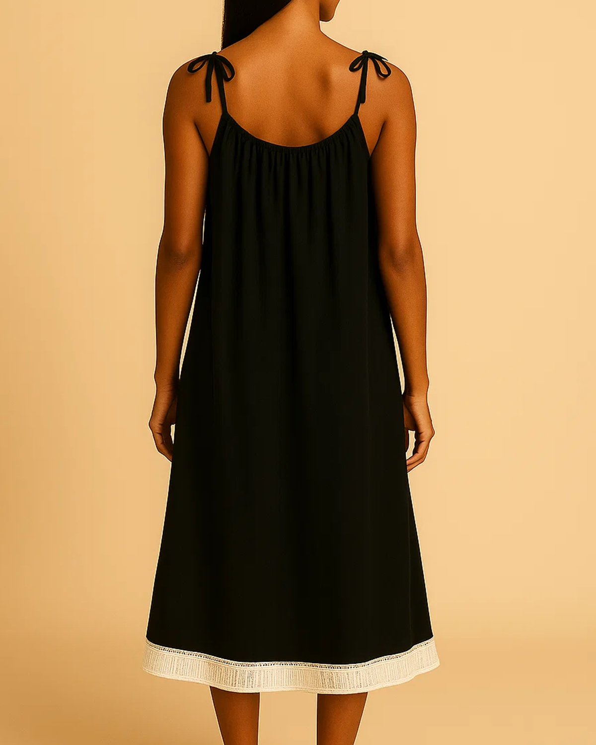 Regular price £80.00 GBP Sale price £64.00 GBPBlack Bamboo-Cotton Lounge Dress – Tie Straps & Fringe Hem