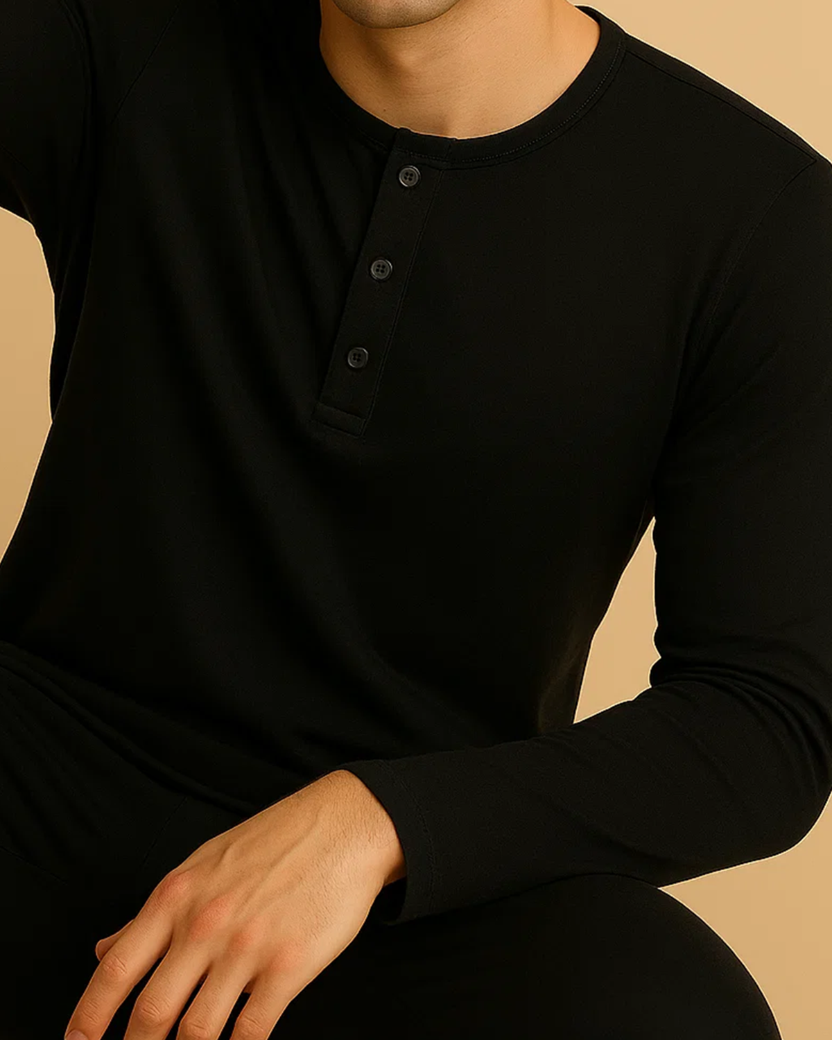 Men's Striped Henley Cotton Pyjama Set in Navy, Black, Green, & Grey Loungewear Men's Striped Henley Cotton Pyjama Set in Navy, Black, Green, & Grey Loungewear