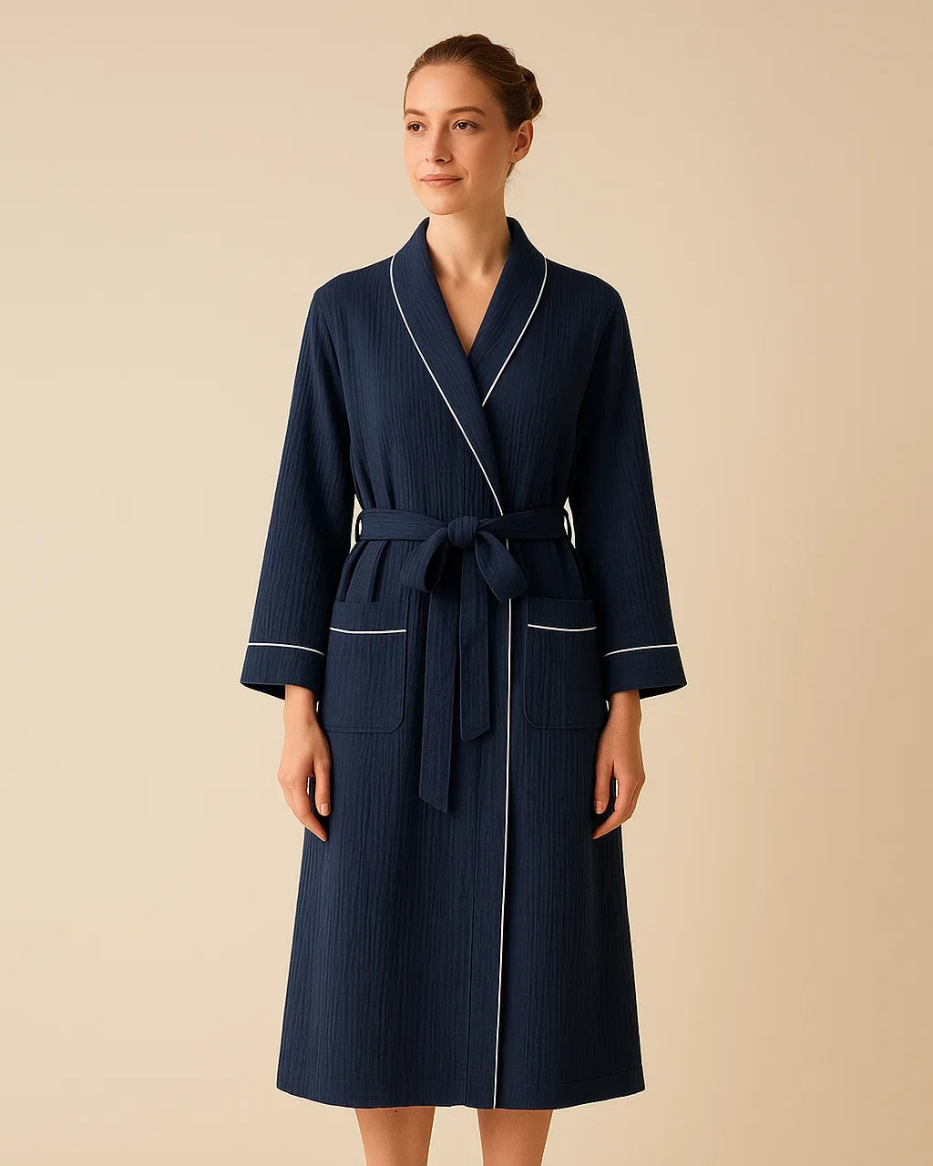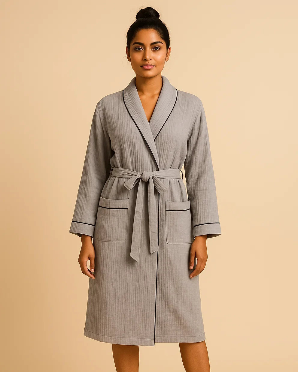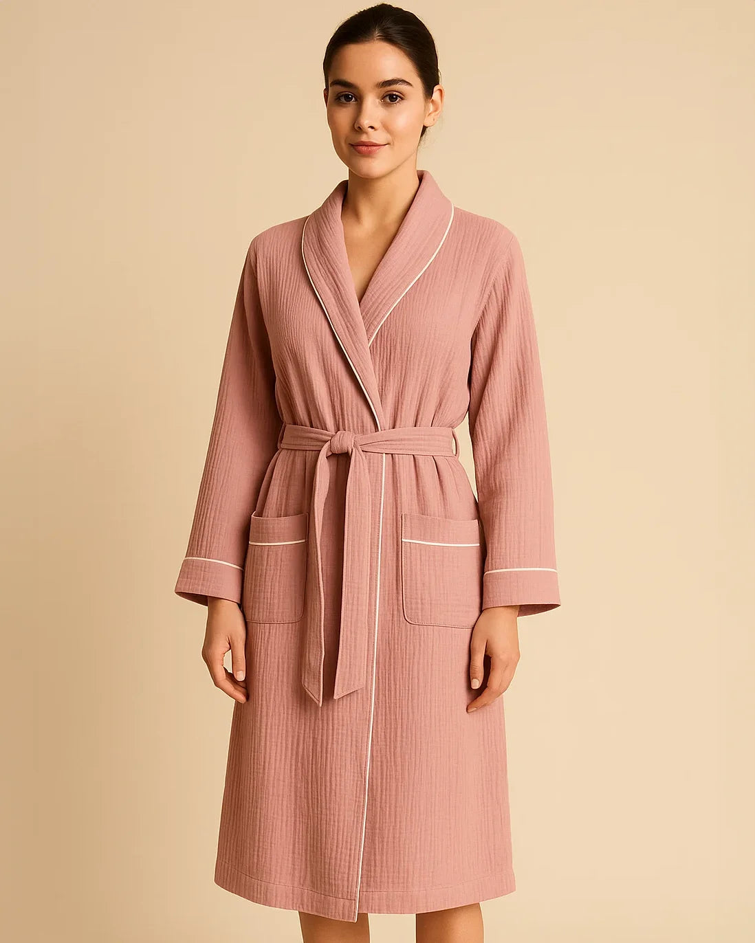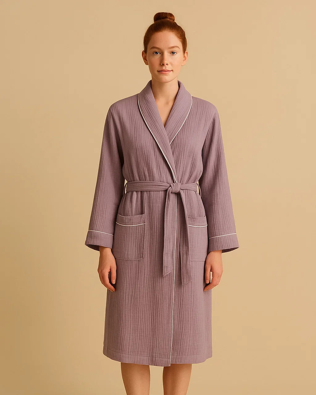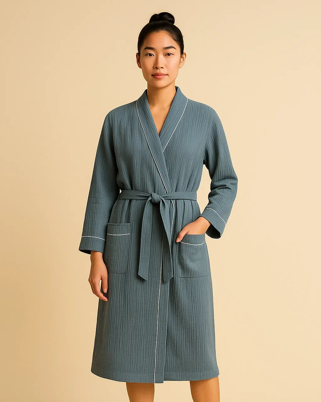 Women Organic Muslin Cotton Robe - Lightweight Breathable Ladies Dressing Gown Women Organic Muslin Cotton Robe - Lightweight Breathable Ladies Dressing Gown