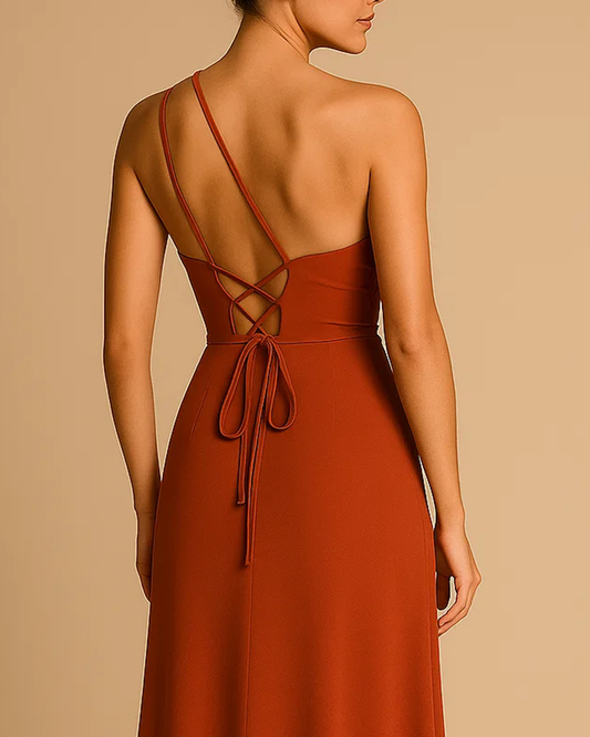 Regular price £150.00 GBP Sale price £112.50 GBPSerena Burnt Orange Dress for Wedding Guest - One Shoulder Asymmetric Maxi Dress