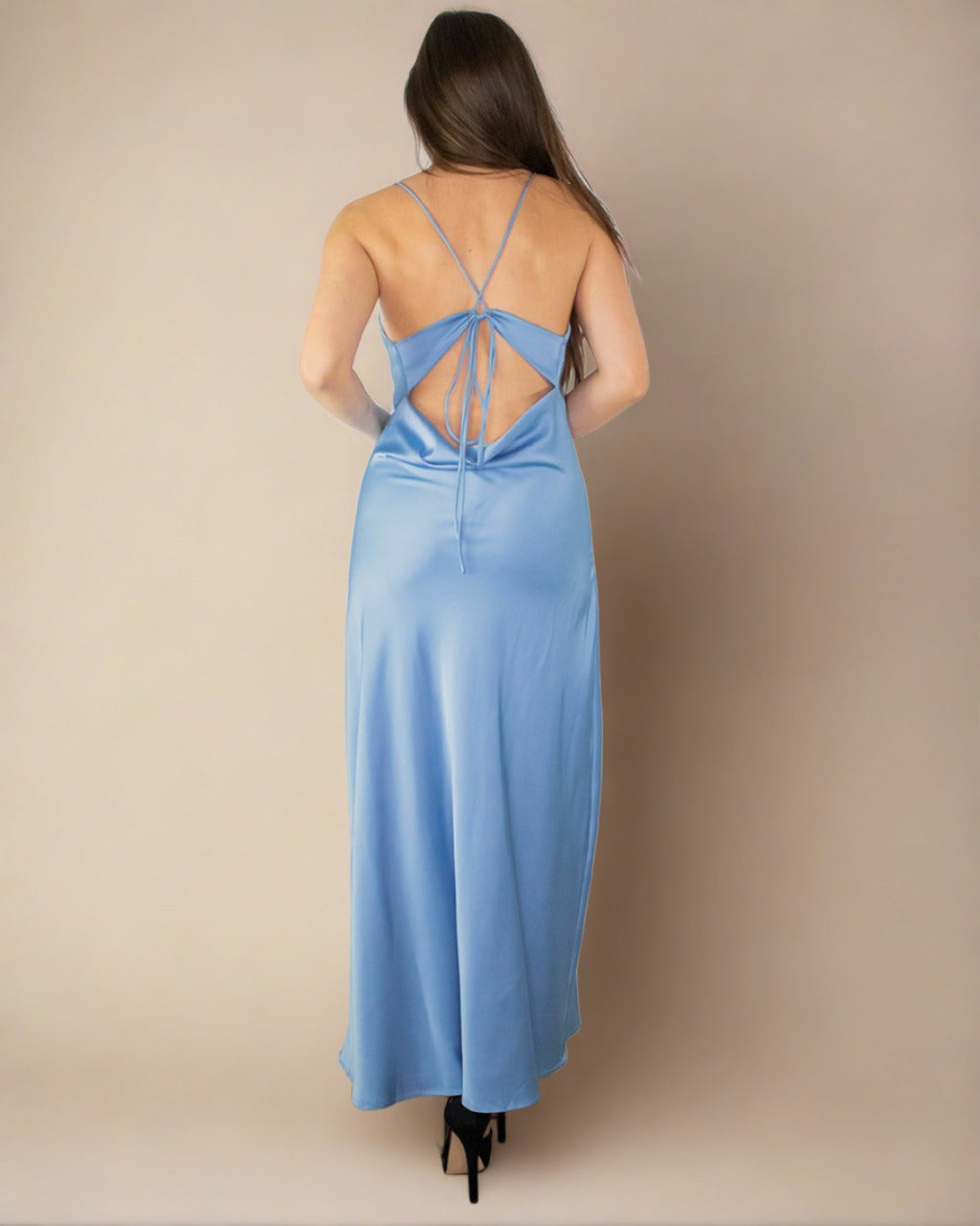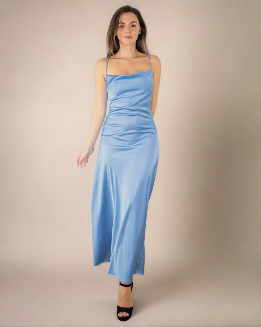 Davina Blue Satin Cowl Neck Dress - Long Satin Slip Dress Davina Blue Satin Cowl Neck Dress - Long Satin Slip Dress