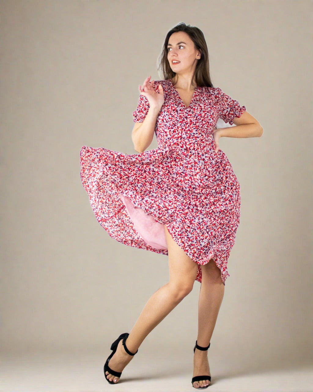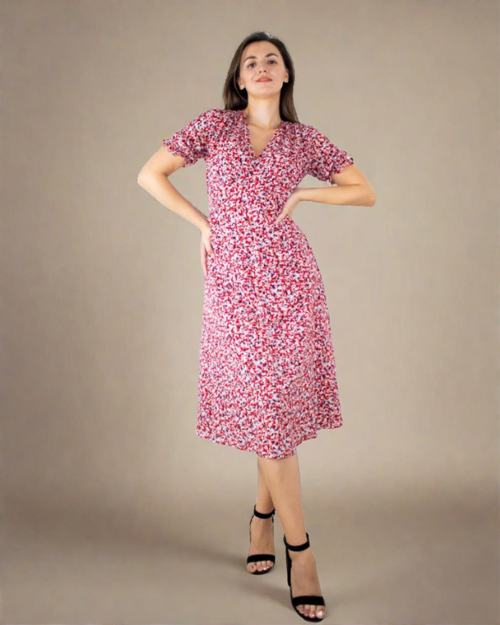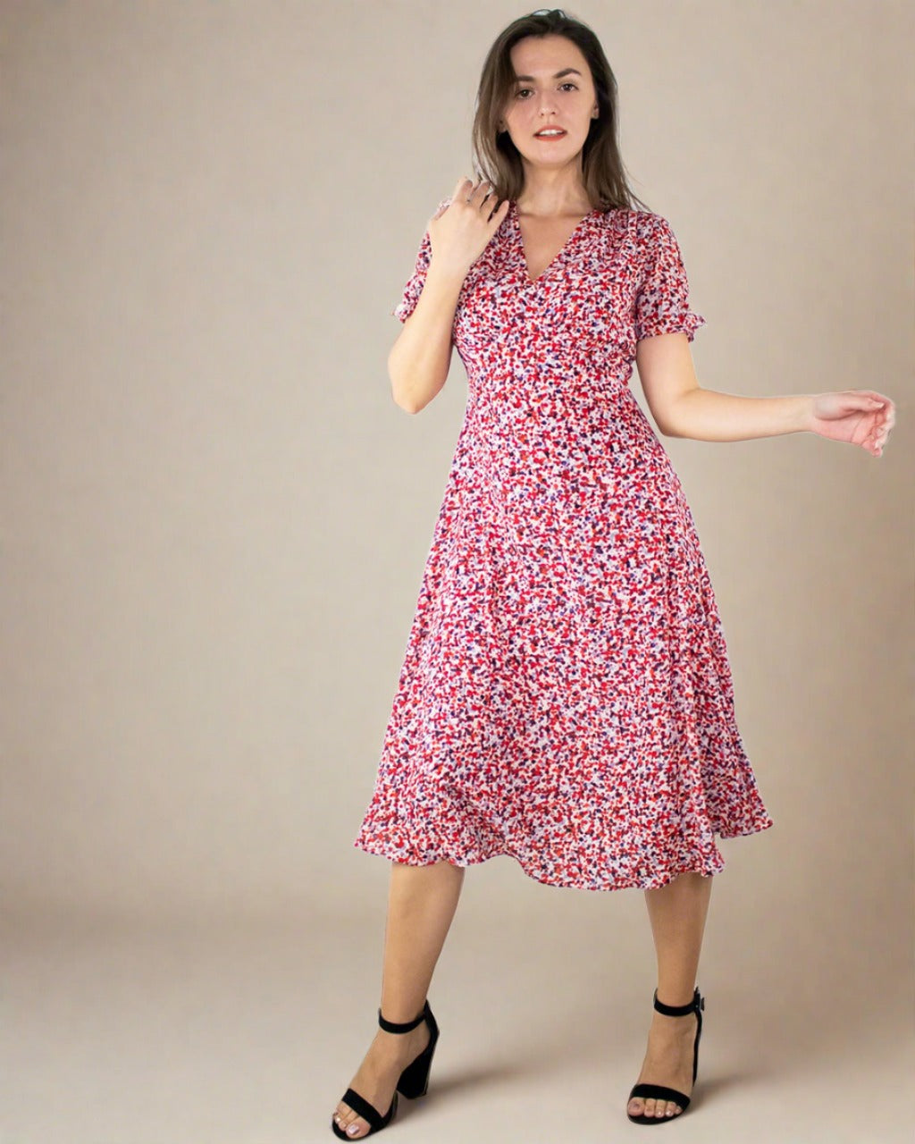 Regular price £150.00 GBP Sale price £120.00 GBPZelia Ditsy Midi Dress with Short Sleeves - Floral Print Midi Dress for Women