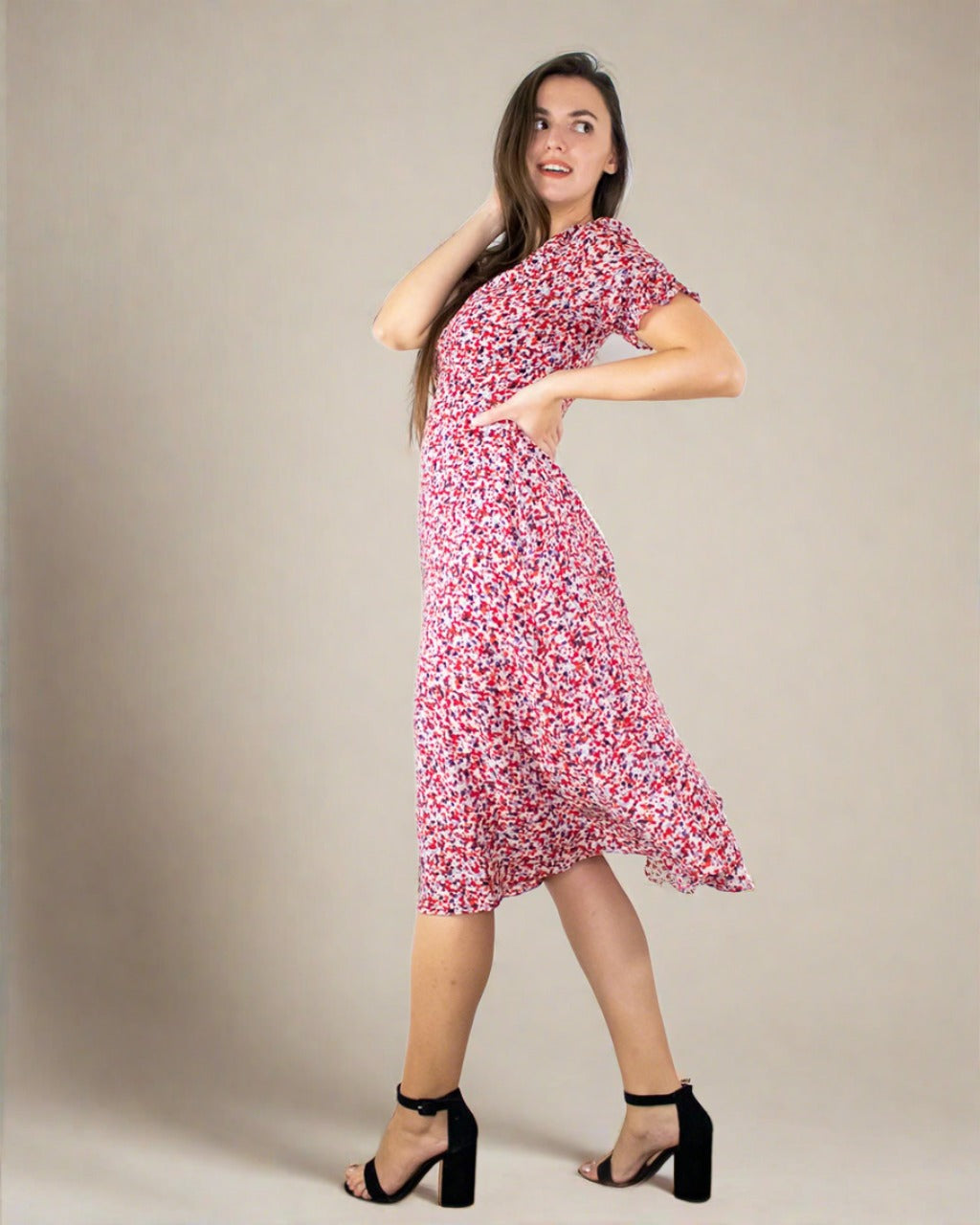Zelia Ditsy Midi Dress with Short Sleeves - Floral Print Midi Dress for Women Zelia Ditsy Midi Dress with Short Sleeves - Floral Print Midi Dress for Women