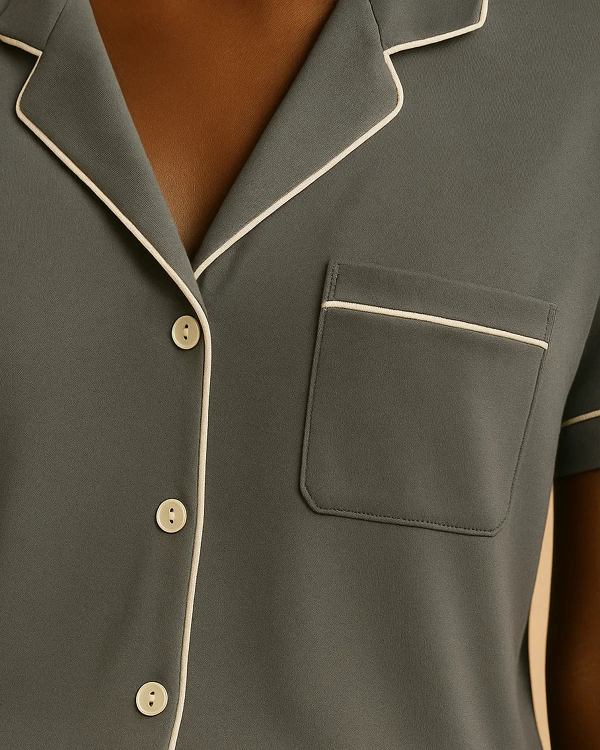 Paired with tailored bamboo shorts featuring contrast piping and a soft elastic waistband, it’s the perfect union of breathable function and elevated design. Whether you're winding down or lounging in, this isn’t just another bamboo pyjama set—it's your summer staple, redefined with intention.