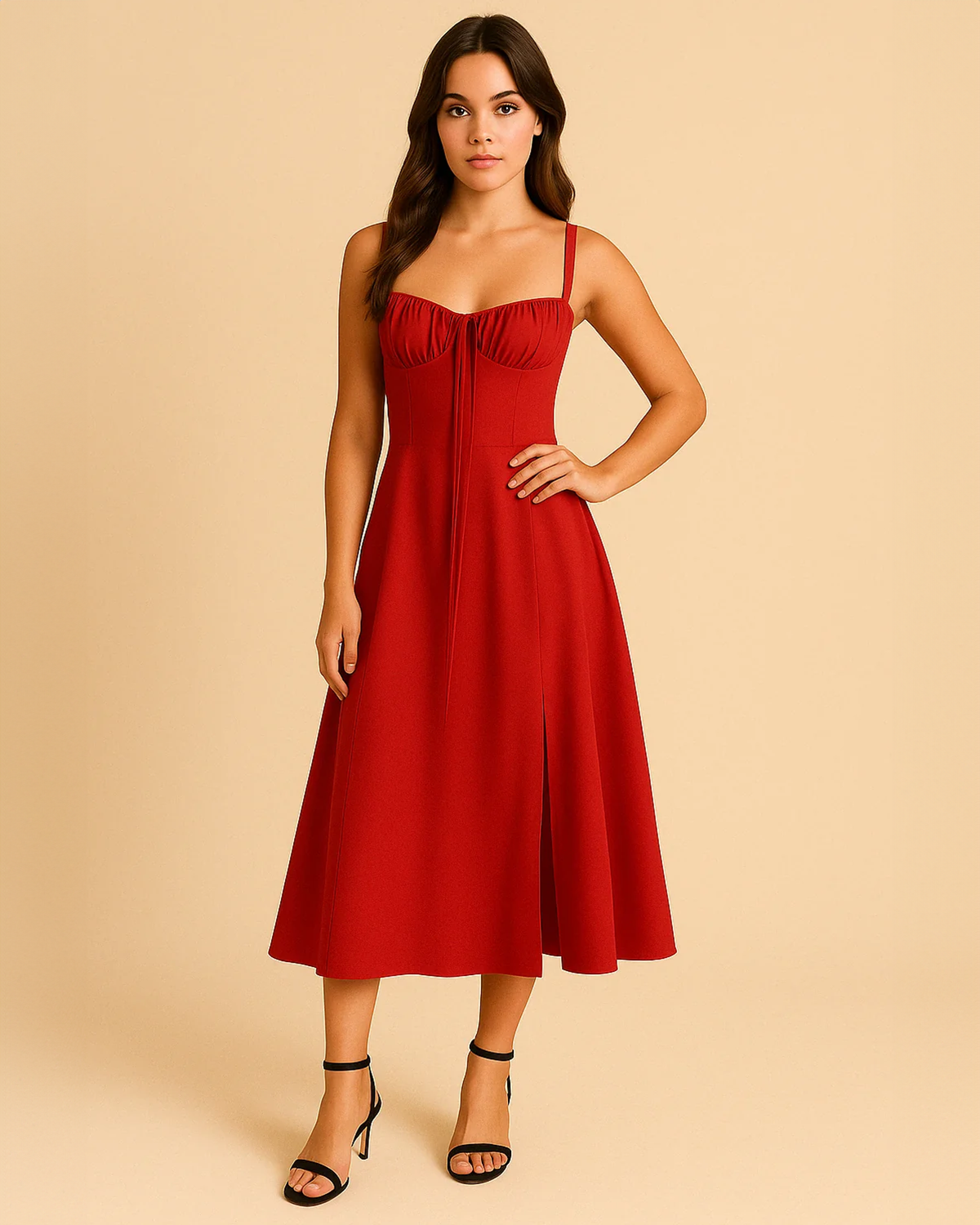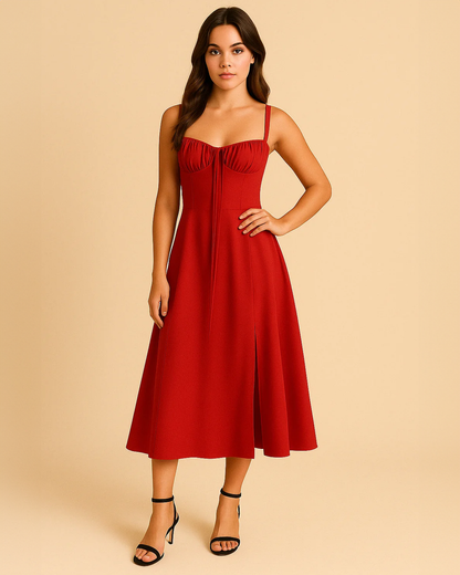 Indulge in style and sophistication with Heidi Red Corset Dress, expertly designed to enhance your natural curves and elevate your overall look. Perfect as a wedding guest dress, Heidi is made with high-quality recycled polyester, this red sun dress boasts both comfort and durability, making it a staple piece in your wardrobe for years to come. Take advantage of the timeless design and versatile colour to effortlessly turn heads and make a lasting impression at any occasion.