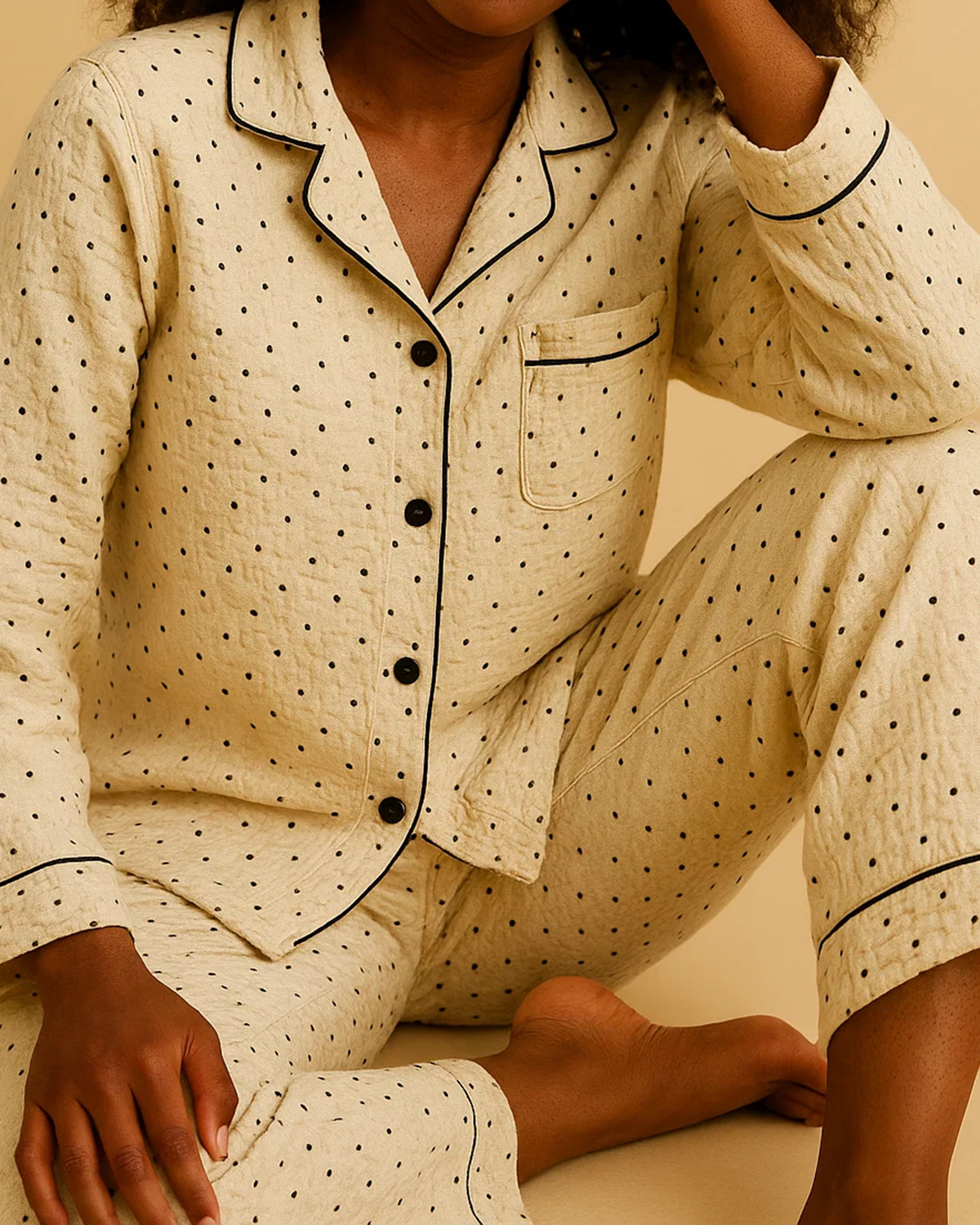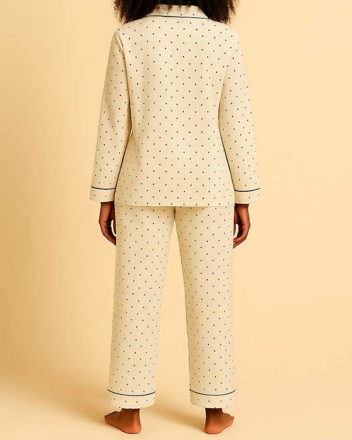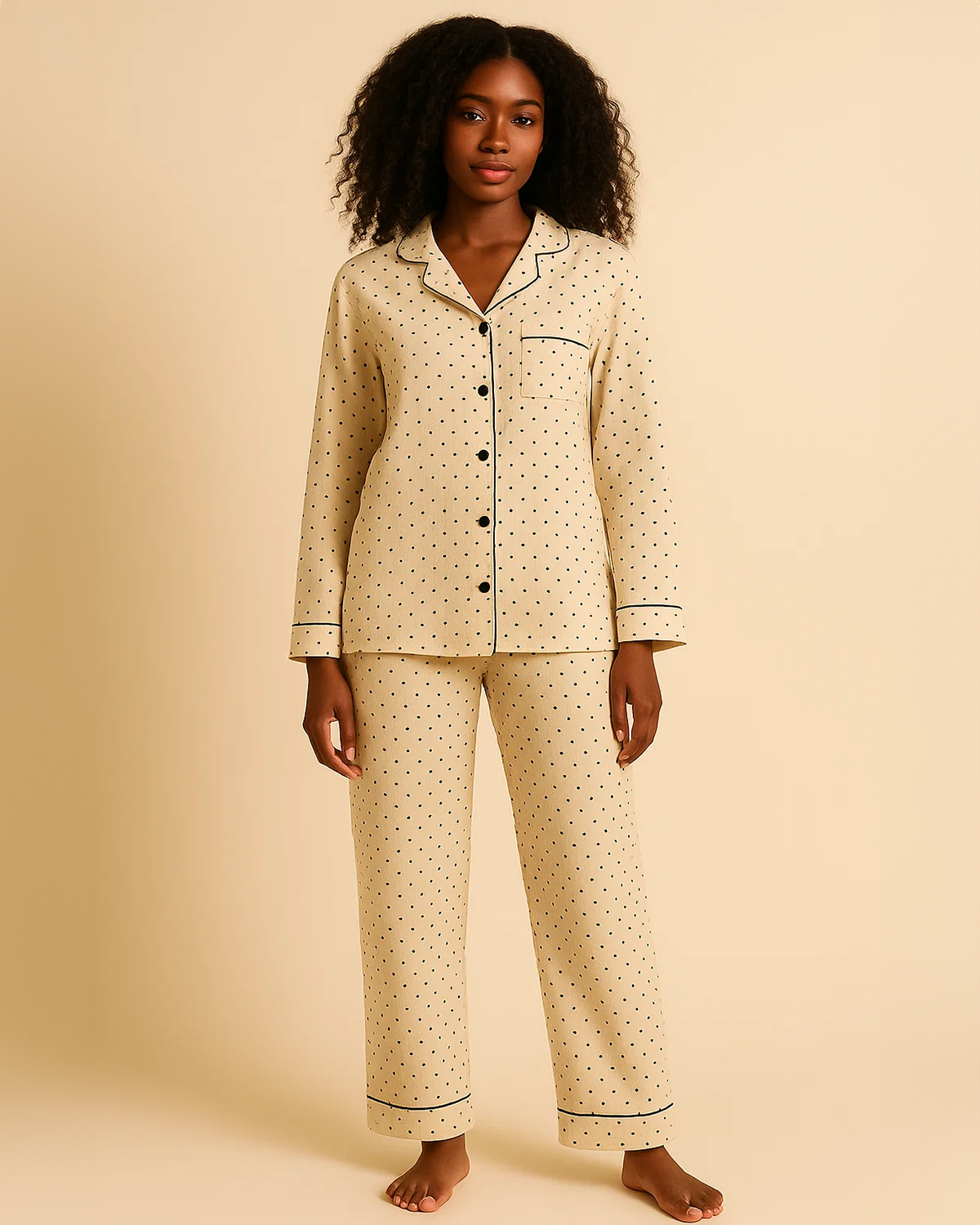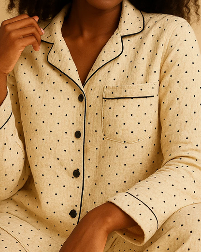 Women's Cotton Crepe Polka Dot Pyjama Set – Lightweight Button-Up Sleepwear